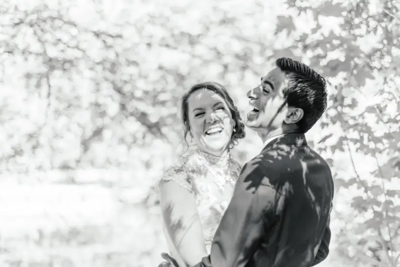 Het is zo leuk – maar ook belangrijk voor mooie trouwfoto’s: maak plezier met elkaar! Jullie staan tijdens de fotoshoot waarschijnlijk dicht bij elkaar, dus pak elkaar lekker vast, maak grapjes, geef elkaar een kus of doe even lekker gek en kietel elkaar. Hierdoor kan jullie fotograaf échte emoties vastleggen, wat het alleen maar goed doet op trouwfoto’s!